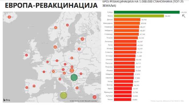 Srbija je prva u Evropi po broju građana koji su primili obe doze vakcine na milion stanovnika (126.159). Iza Srbije su Malta, Danska, Švajcarska, Mađarska i Norveška.